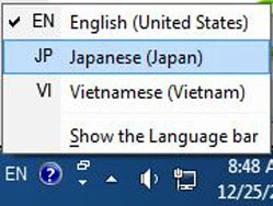 Bước 6: Click vào biểu tượng chữ EN (language) trên thanh taskbar và chọn Japanese