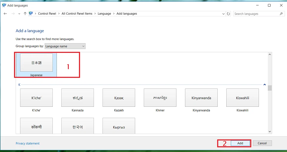 Hình ảnh hướng dẫn cách gõ tiếng Nhật trên Win 10 bằng việc thêm ngôn ngữ vào bàn phím.