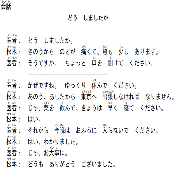 じゃ、薬を 飲んで、きょうは 早く 寝て ください。
